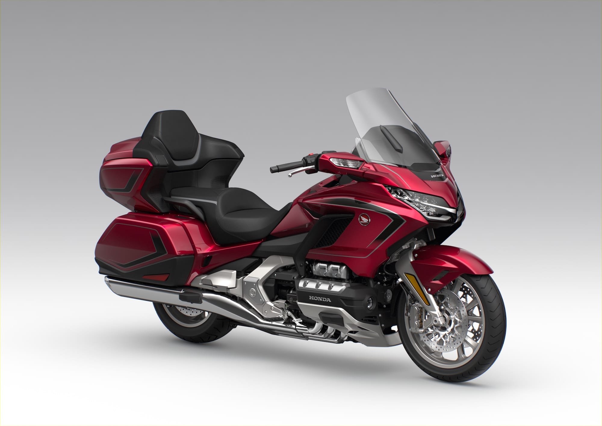 In 2026, the base Gold Wing and its DCT version come in Matte Silver. The Gold Wing Tour/Tour DCT are available in Deep Pearl Gray, Metallic Black, or Candy Ardent Red, while the airbag-equipped Tour DCT comes in Metallic Black.