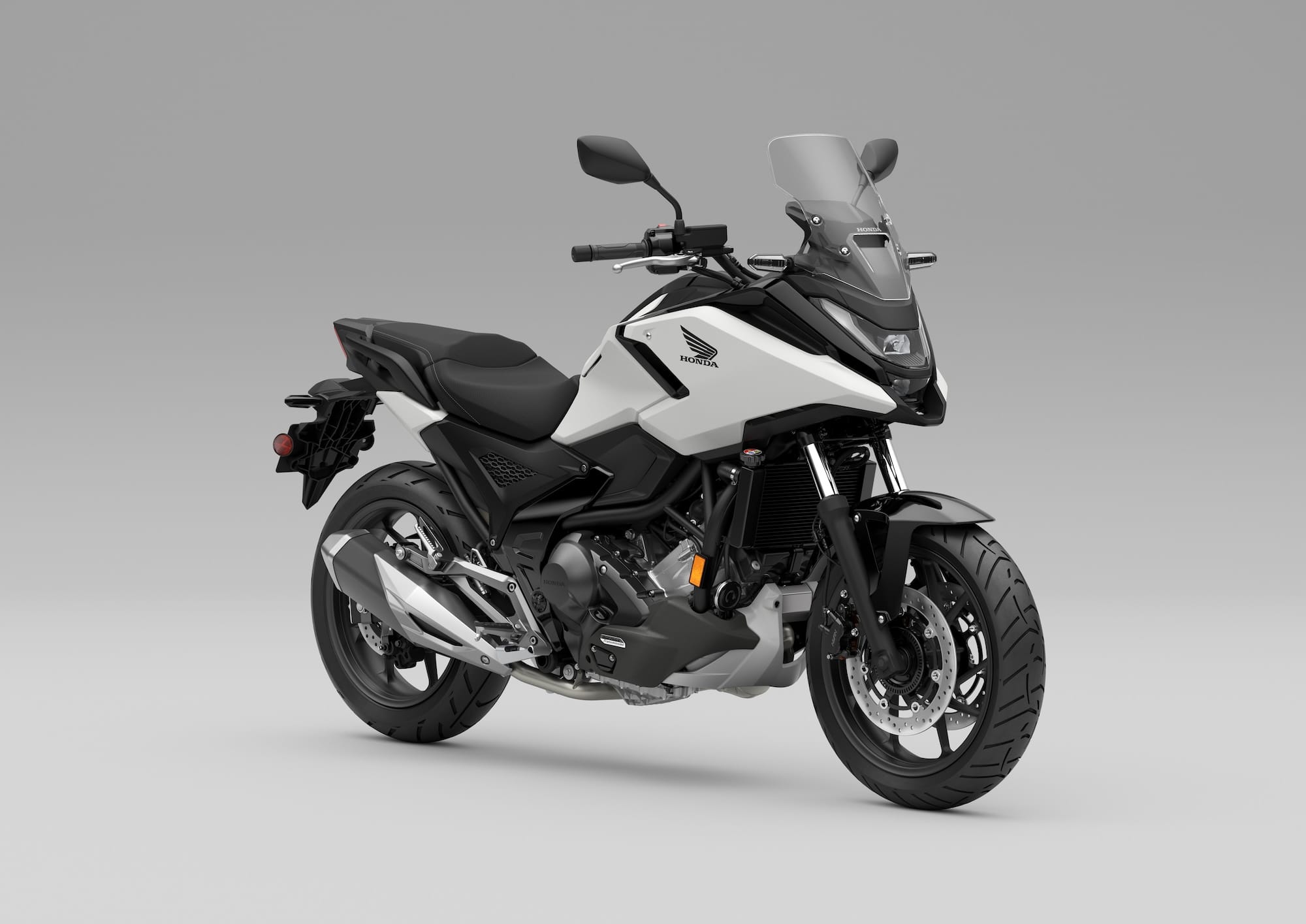 The 2026 NC750X DCT is painted Matte Pearl White and retails for $9,499.
