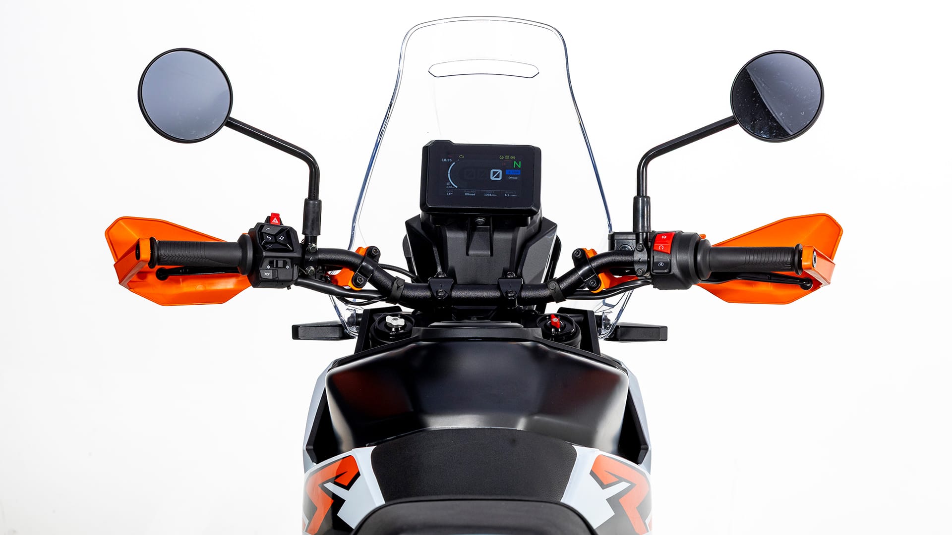 The R version represents a big step forward in suspension performance, using fully adjustable WP Apex components with about 9 inches of travel at both ends. The cockpit features a new 5-inch TFT display with smartphone connectivity and a full suite of modern rider aids, including lean angle-sensitive traction control and an off-road ABS mode.