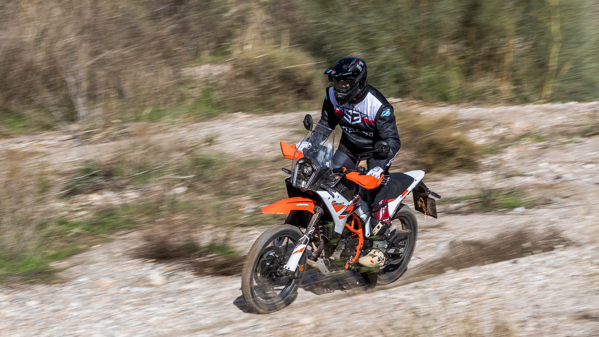 On pavement, the KTM’s sporty DNA came through clearly, with a very agile, responsive chassis that encouraged a brisk pace. KTM has drawn from its rally racers a trellis frame without lower rails, plus a bolted-on subframe made of steel tubes.