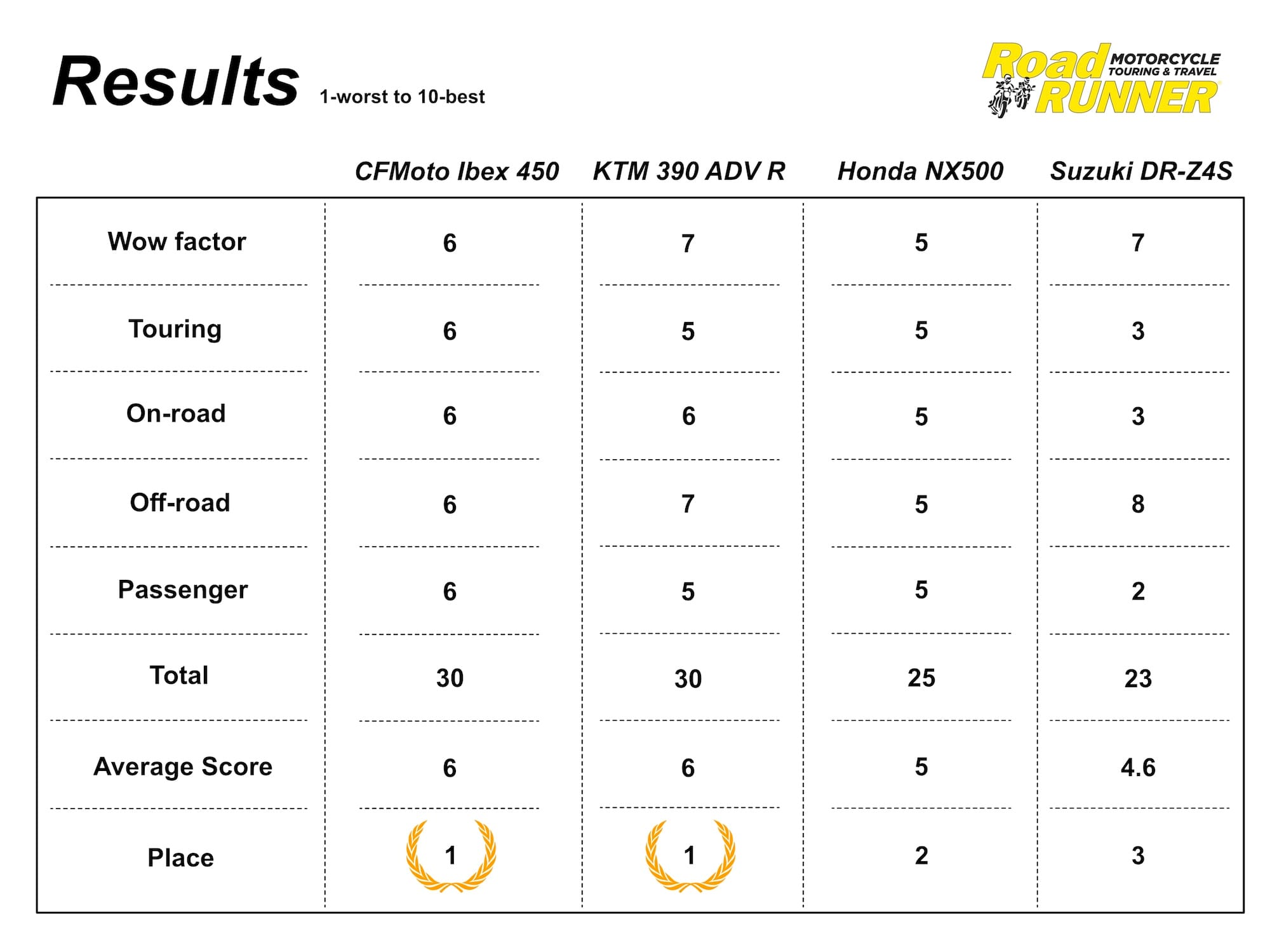 These four test bikes showcase distinct personalities. The Honda NX500 leans toward daily commuting, the KTM 390 Adventure R flaunts rally-bred DNA, the Suzuki DR-Z400 thrives on sporty thrashing, and the CFMoto Ibex 450 blends them all most effectively.