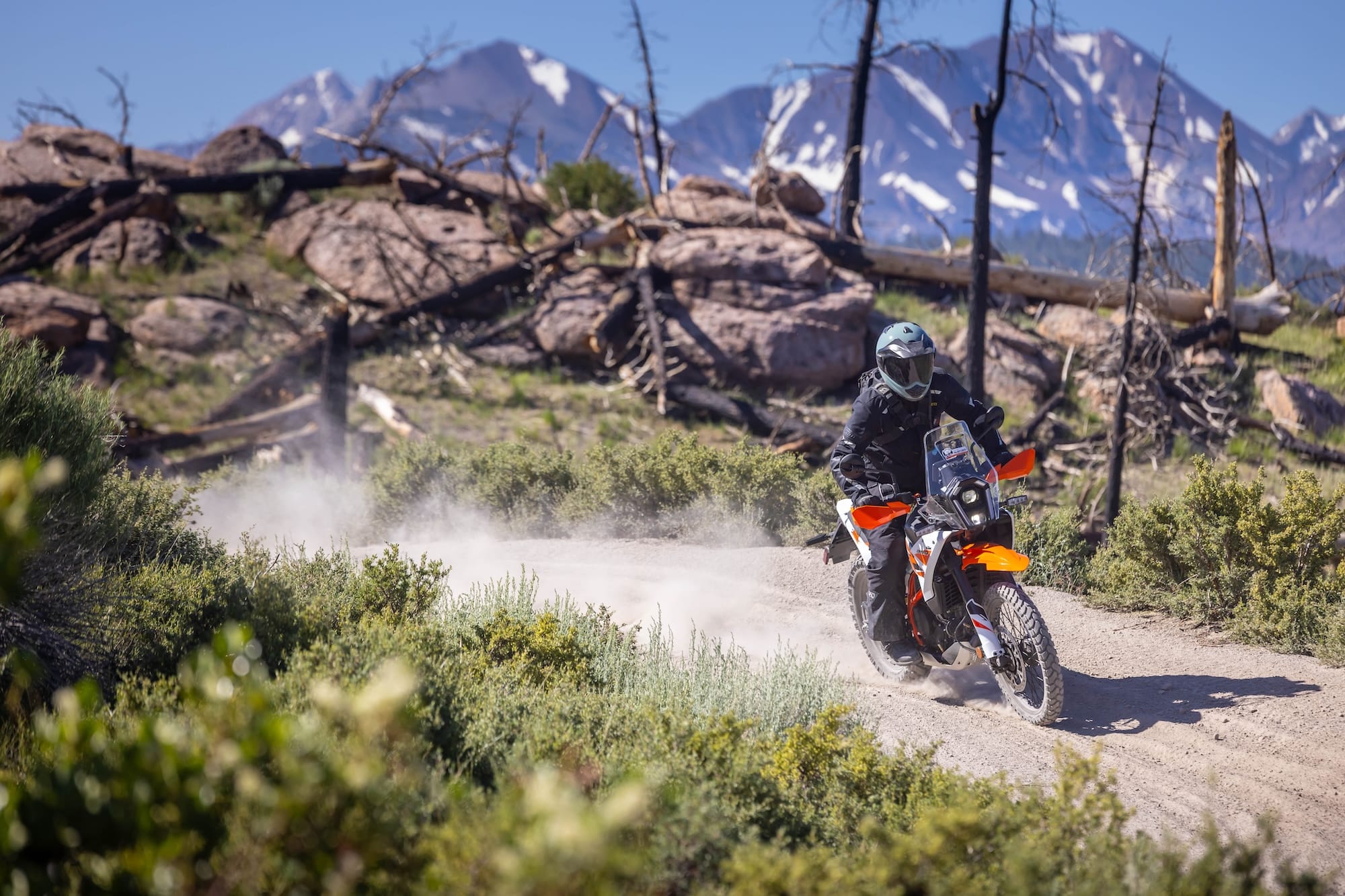 In the dirt, the DR-Z4S is in its element. Ride mode A unleashed precise power for pinpoint drifts. Low-speed tech sections exposed long first and second gears and middling midrange punch. The slick Suzuki gearbox and clutch performed excellently.