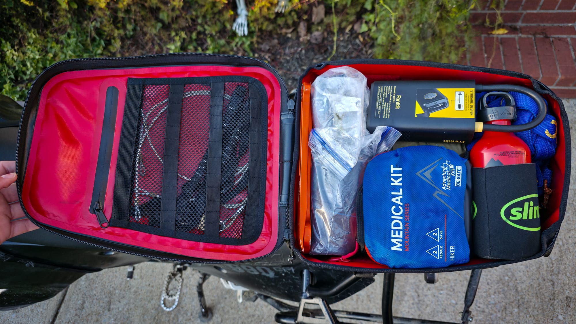 The cable pass-through lets me run a power bank to my handlebar phone mount when I need it. The internal divider kept my sunglasses separate from my wallet and other small items—no scratched lenses here. The document pouch was perfect for storing the registration and house keys.