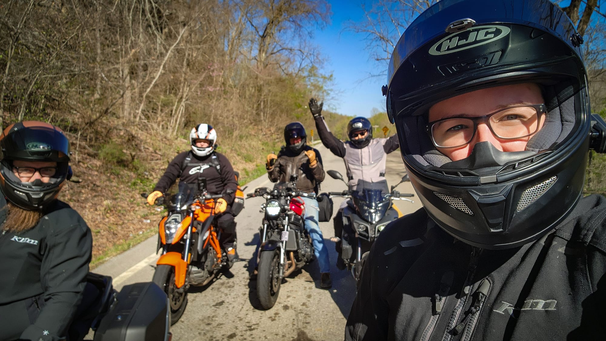 James, who we sometimes call Andy, is the happiest person I’ve ever met. His saddlebags are like Mary Poppins’ duffle and can always fit one more item—especially if that item is bourbon or Arkansas moonshine. Andy was riding his not-so-stealthy KTM 1290 Super Duke.