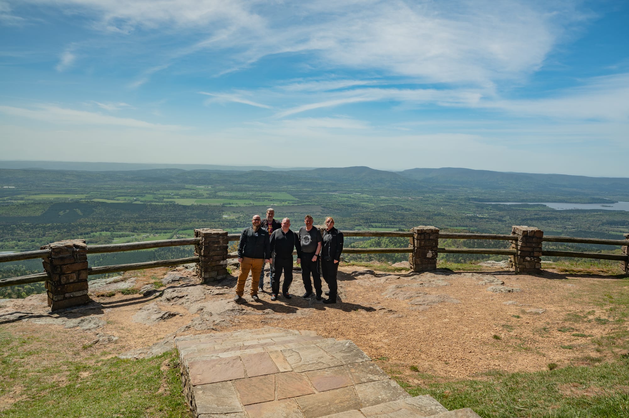 Mount Magazine Scenic Byway (that is, the aforementioned SR 309) twists its way to the top of Mount Magazine, the highest point in Arkansas at 2,753 feet. It had gotten quite warm in the valley, but as we began our ascent, the temperature dropped to a cool early spring chill.