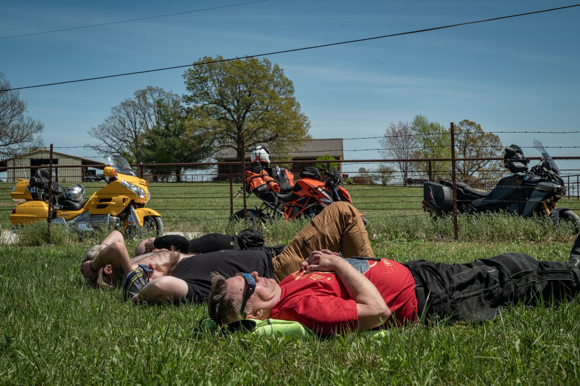 The locals gave us several funny looks as we be-bopped our way down the dirty, bumpy road on street slicks. We took our time, picking our lines through the sandy dirt and avoiding speeding cars coming from the opposite direction. At least we were moving. We arrived at our destination with a few minutes to spare before the partial began. Laying our jackets in the grass, we set up camp for the next couple of hours. We took turns staring at the sun, snacking, and snapping photos through our solar filters. We called out the progress as the moon inched between the sun and Earth, eventually eclipsing the sun entirely.