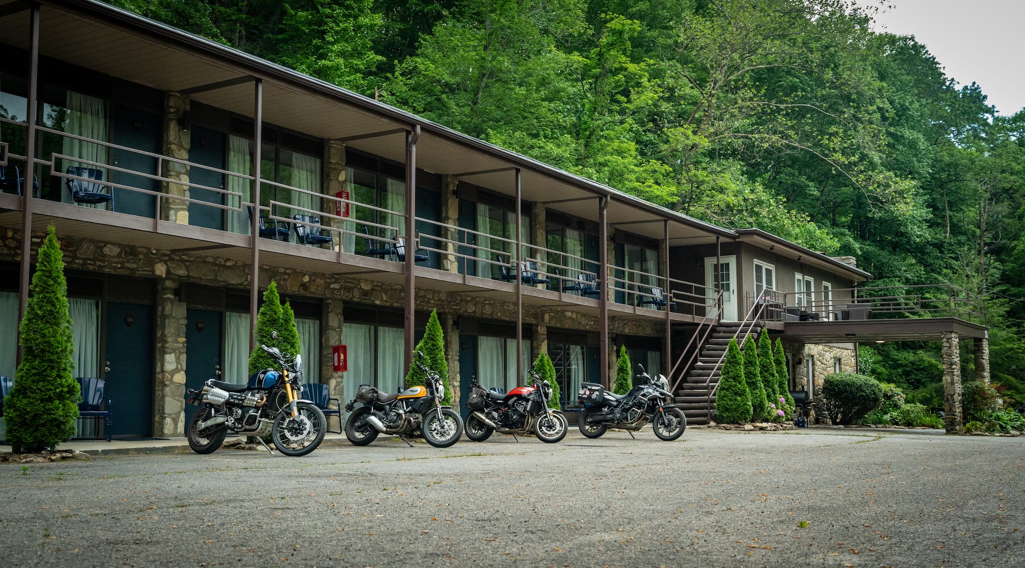 Heart of the Valley Motel is a creekside motel located on the main strip in Maggie Valley, but you wouldn’t know it by simply walking out of your room. Heart of the Valley is tucked away off the road, surrounded by forest and mountains. The rooms are spacious and newly renovated. And the best part? The owners are riders too. Ask them about their bikes and they’ll be happy to tell you stories while relaxing around a campfire after a long day in the saddle. Find it at 73 Heart Ln, Maggie Valley, NC, (828) 400-0700.
