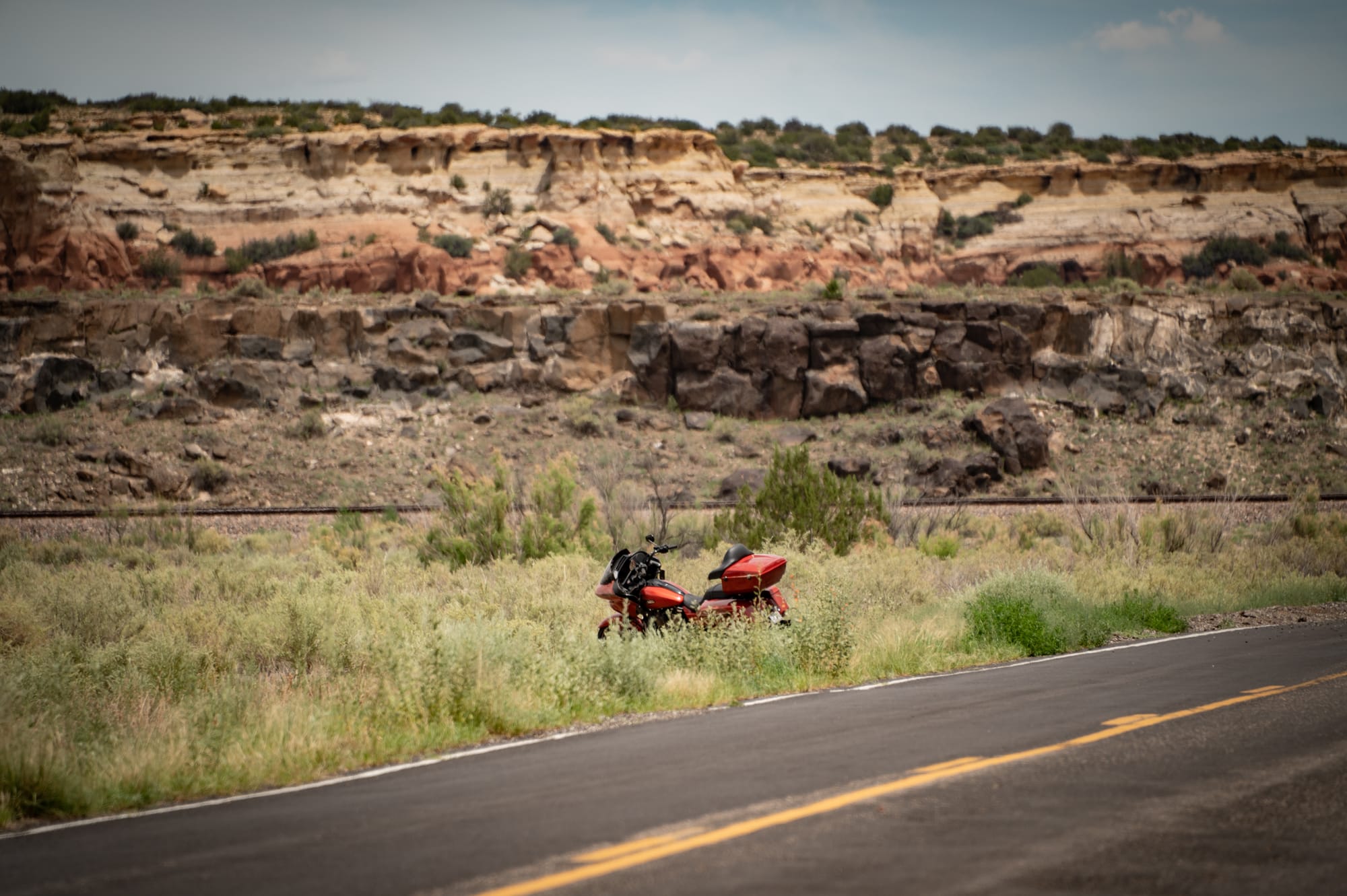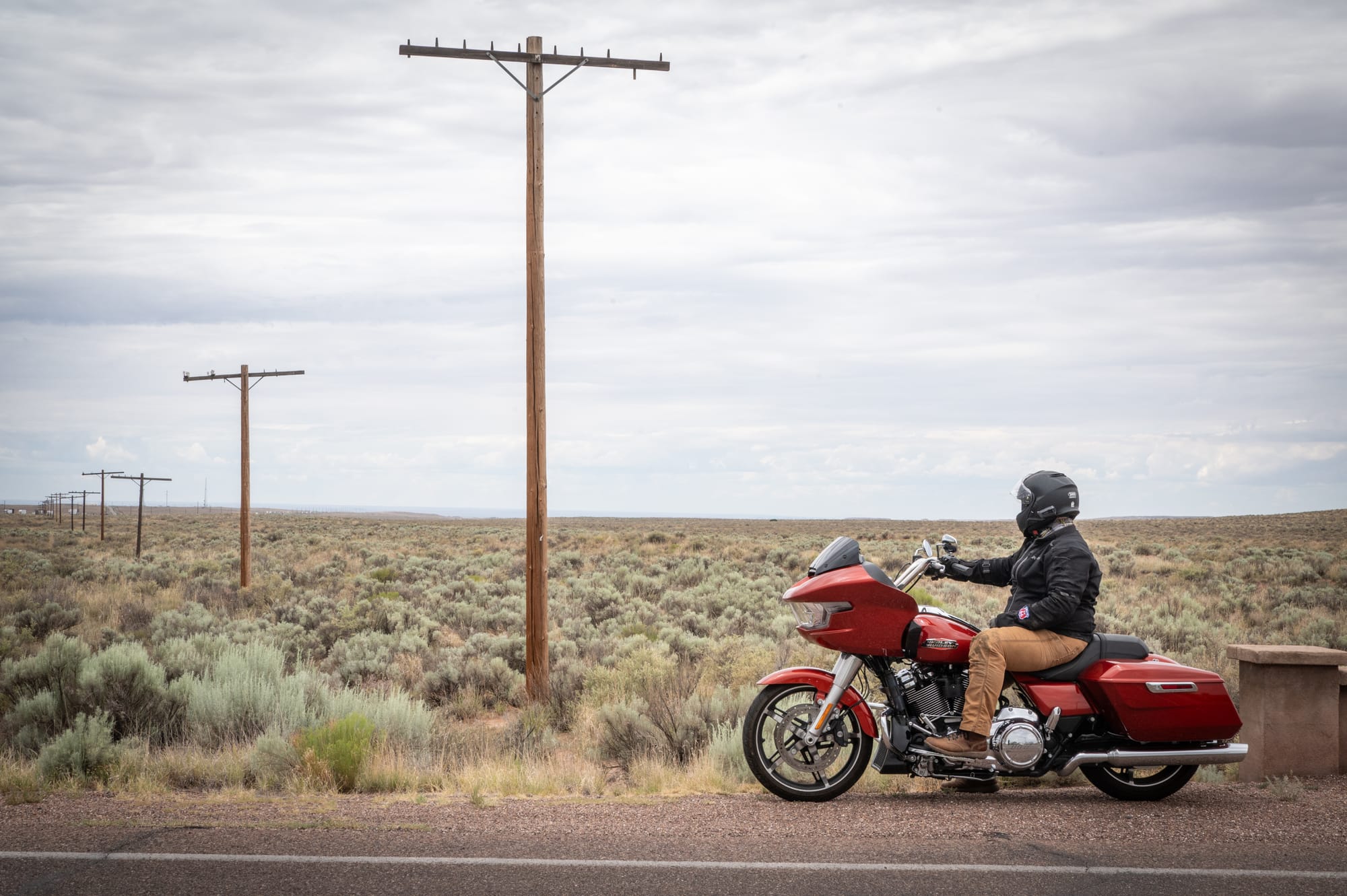 We were able to get the bike towed to Thunderbird Harley-Davidson in Albuquerque, and subsequently rented a replacement from their EagleRider fleet to finish the trip. The dealership even had a Road Glide in the same color. We rolled into Gallup, NM, as the sun set in front of us. What was supposed to be a short-distance day filled with photo stops had turned into a very long one, with the added headache of making sure the trip continued on. Ultimately, we succeeded, and a juicy rib-eye steak and enchiladas put us all quickly to bed.