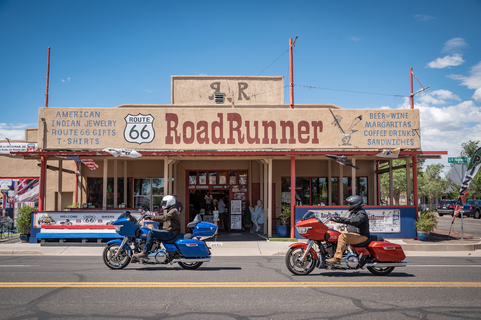 After licking the stamps and sliding our cards into a faded blue mailbox, we saddled up again, engines rumbling to life. With our tanks topped off and a few messages bound for home, we rolled back onto the Mother Road, enriched by a quiet moment that felt like it could have happened 70 years ago.